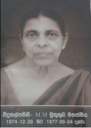 එම්.එම්. මුතුකුඩ විදුහල්පතිනිය වසර 3කට ආසන්න කාලයක් මෙම පාසලේ සේවය කල අතර විද්යාලයේ උන්නතිය වෙනුවෙන් කටයුතු කළ විදුහල්පතිනියකි. |